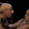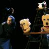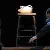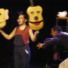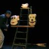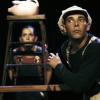 Réponse dans ce spectacle car à chaque tintement de piécette on voyage par un autre conte : la sorcière de la rue Mouffetard doit manger une petite fille pour redevenir jeune et belle. Le rêve d’une patate amoureuse d’une vieille guitare papotante de devenir frite se transforme en tour du monde. Un récit mythologique de la création de l’univers dans lequel la jalousie du petit cochon le fera désobéir. Sur le plateau un homme et une femme orchestrent des objets hétéroclites, improbables. Inventaire à la Prévert de « Géo-trouvetout » ce gigantesque capharnaüm nous promène avec une facilité ahurissante de lieu en lieu, ville, cave, ciel, d’un personnage à un autre, papa Saïd, sultan, petit dieu, d’un moment à l’autre, début du monde, jour, nuit. Les enfants sont conquis par cette « foultitude » de processus imaginaires. « ils z’en ont du travail pour ranger tout ça ».